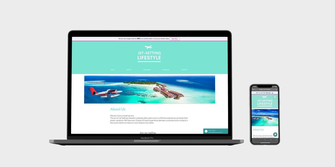 A client needed a website created for their new Jetsetting Lifestyle business.
